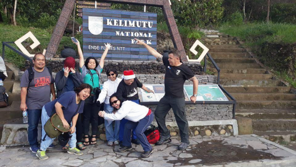 One of the most memorable moments of the journey is the sunrise visit to Taman Nasional Kelimutu. The park is famous for its three volcanic crater lakes that display different colors due to mineral reactions.